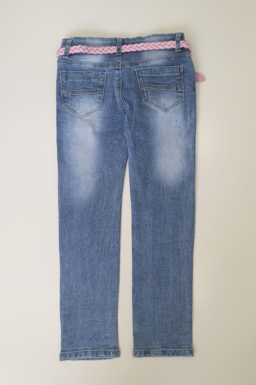 Τζιν παντελόνι για κορίτσια από 6 έως 16 ετών ,ελαφρώς ξεβαμμένο, με σκισίματα,κλείνει με κουμπί ,έχει 2 τσέπες μπροστά και 2 πίσω και έχει εσωτερικό λάστιχο με κουμπάκι στη μέση για ρύθμιση του μεγέθους.Διαθέτει ζώνη.