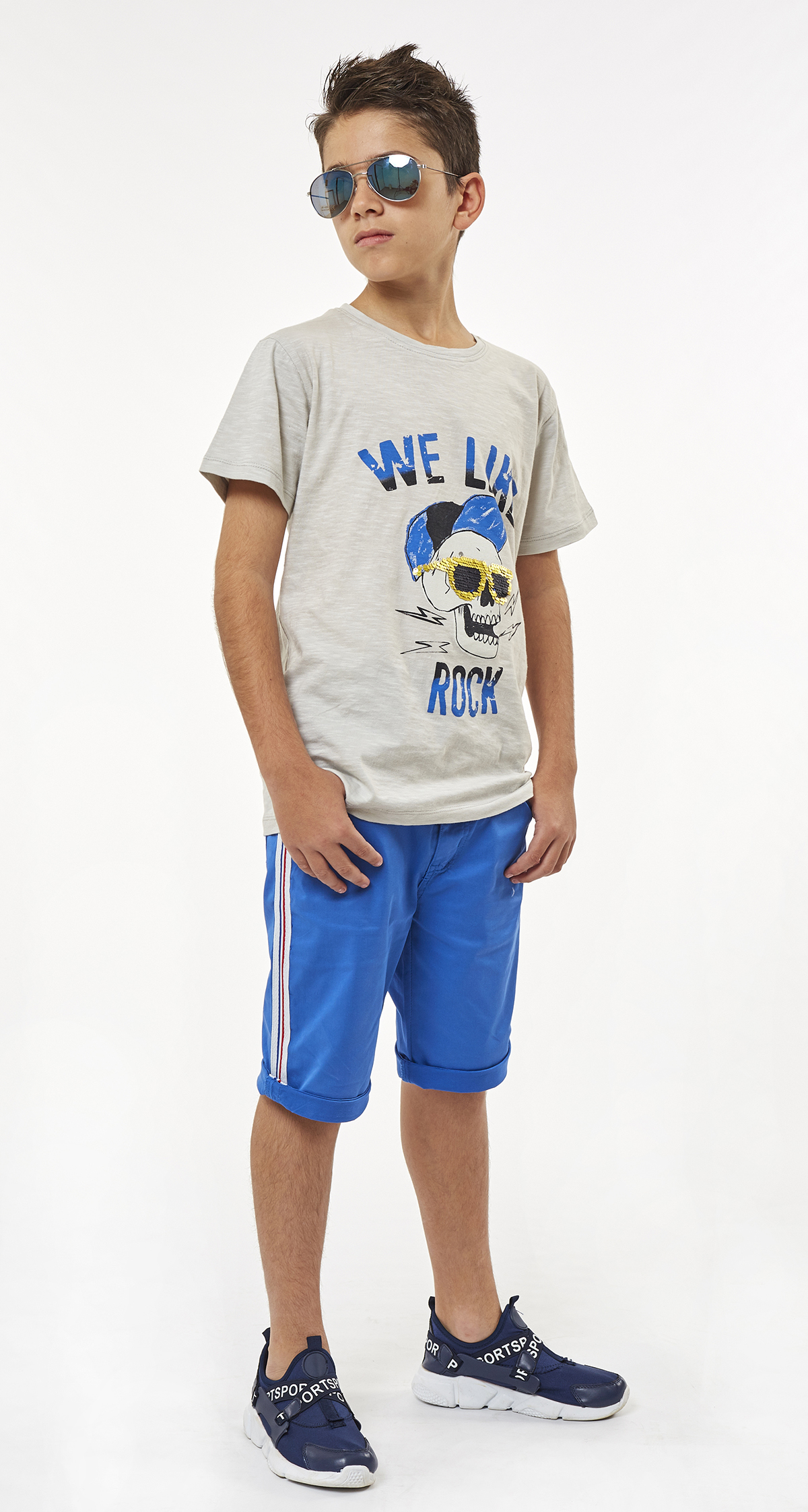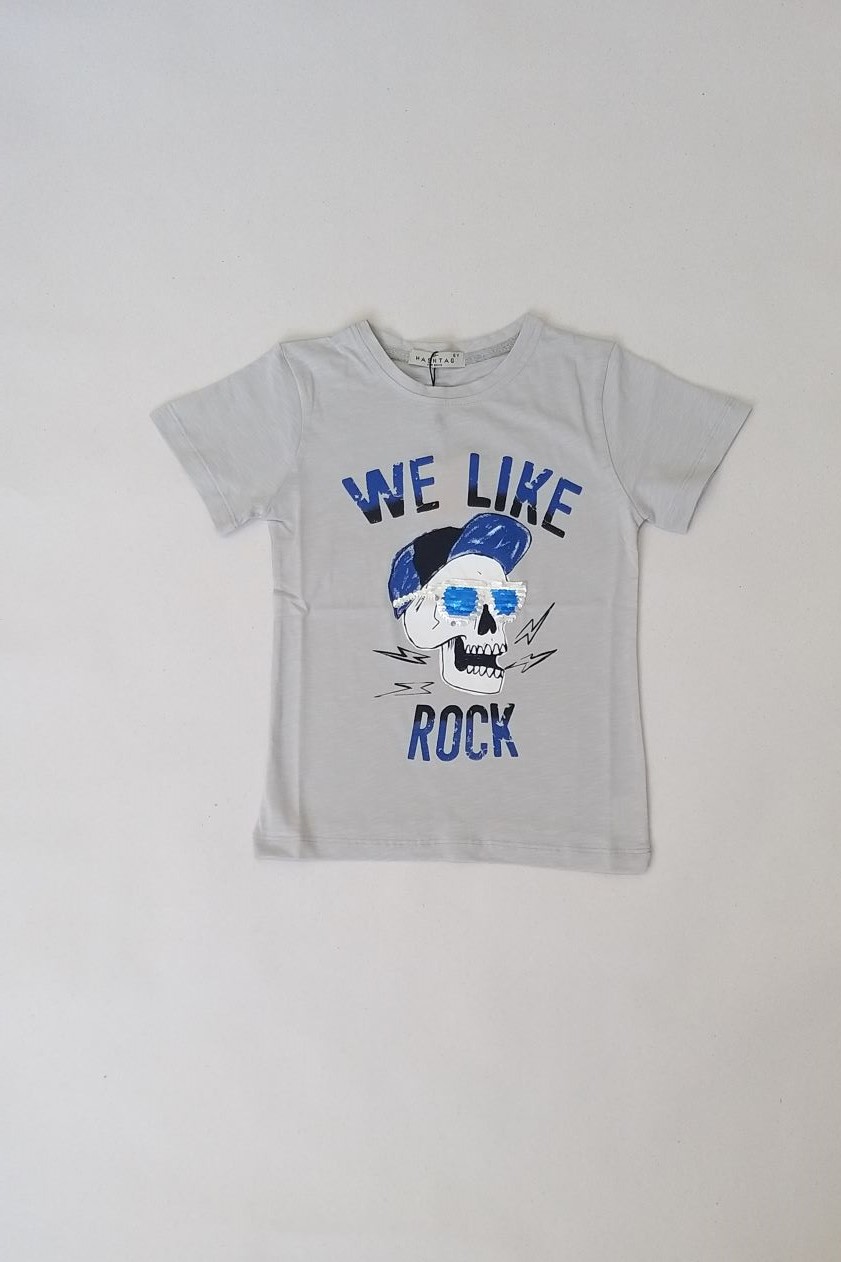 Μακό μπλούζα για αγόρια από 6 έως 16 ετών ,λαιμόκοψη με κοντό μανίκι και σχέδιο με παγιέτες μπροστά που αλλάζουν χρώμα από ασημι-μπλε σε μαύρο-μουσταρδί