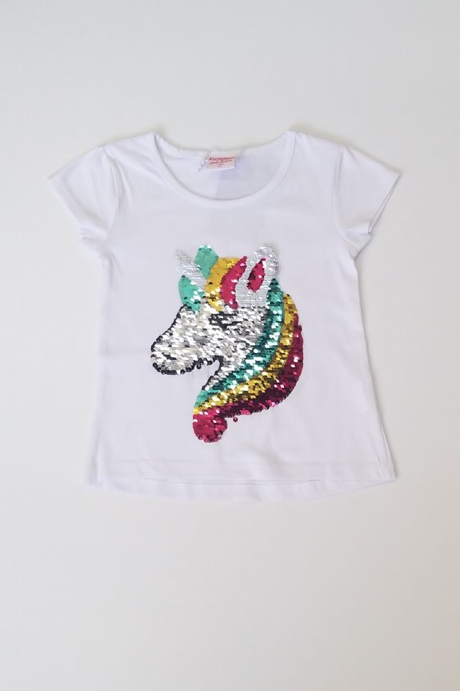 Μπλούζα για κορίτσια από 1 έως 6 ετών με κοντό μανίκι,λαιμόκοψη και σχέδιο με παγιέτες που αλλάζουν χρώμα από ασημί σε άσπρο