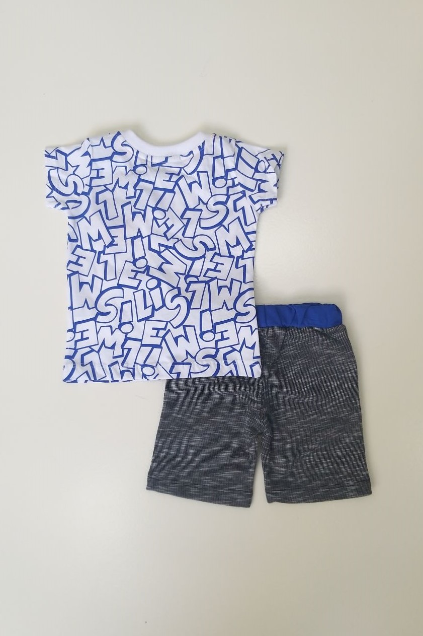 Σετ για αγόρια από 06 έως 18 μηνών με μακό λαιμόκοψη μπλουζάκι με κοντό μανίκι και επαναλαμβανόμενο μοτίβο και βερμούδα με λάστιχο με κορδόνι στη μέση και 2 τσεπούλες μπροστά