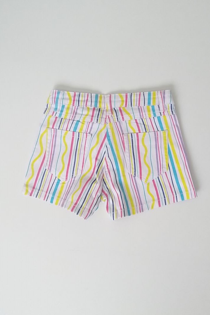 Σόρτς για κορίτσια από 6 έως 16 ετών ,ελαφρώς ελαστικό ,κλείνει με κουμπί,είναι ριγέ ,έχει 2 τσέπες μπροστά και 2 πίσω και έχει εσωτερικό λάστιχο με κουμπάκι στη μέση για ρύθμιση του μεγέθους
