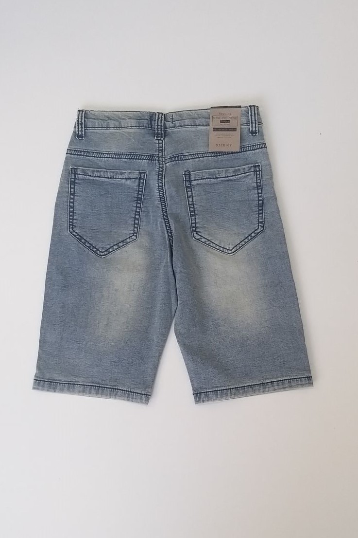 Τζιν βερμούδα για αγόρια από 6 έως 16 ετών με 2 τσέπες μπροστά και 2 πίσω,κλείνει με κουμπί,έχει λάστιχο με κουμπάκι εσωτερικά για ρύθμιση του μεγέθους,είναι ελαστική και ελαφρώς ξεβαμμένη