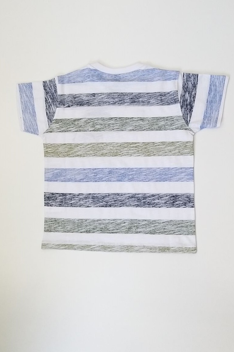 Μπλούζα για αγόρια από 6 έως 16 ετών λαιμόκοψη με κοντό μανίκι και επαναλαμβανόμενο ριγέ μοτίβο