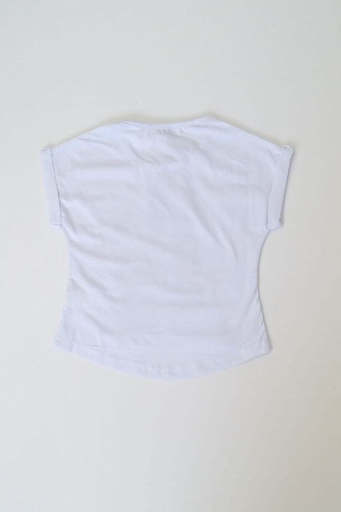 Μπλούζα για ροκ κορίτσια από 6 έως 16 ετών λαιμόκοψη με κοντό μανίκι με ρεβέρ τελείωμα,ελαφρώς πιο μακρυά από πίσω