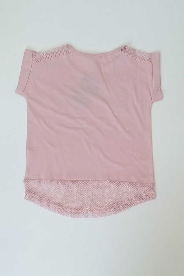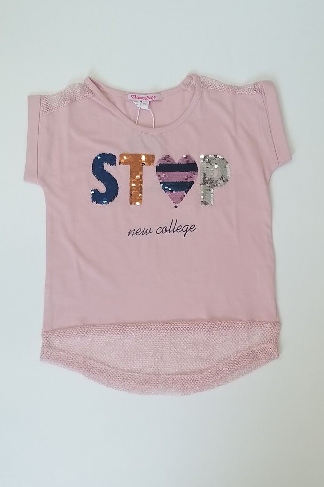 Μπλούζα για κορίτσια από 6 έως 16 ετών με κοντό μανίκι με ρεβέρ τελείωμα, λαιμόκοψη , με παγιέτες που αλλάζουν χρώμα από μπλε σε κόκκινο και από ασημί σε πορτοκαλί. Έχει τρυπητό ύφασμα στους ώμους και στο κάτω μέρος