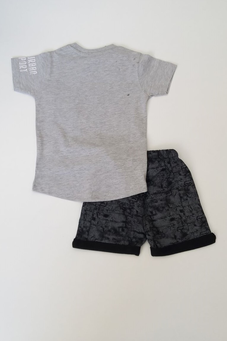Σετ για αγόρια από 1 έως 6 ετών με μακό λαιμόκοψη μπλουζάκι με κοντό μανίκι,ελαφρώς πιο μακρύ από πίσω και σορτσάκι με λάστιχο με κορδόνι στη μέση για ρύθμιση μεγέθους και 2 τσέπες μπροστά