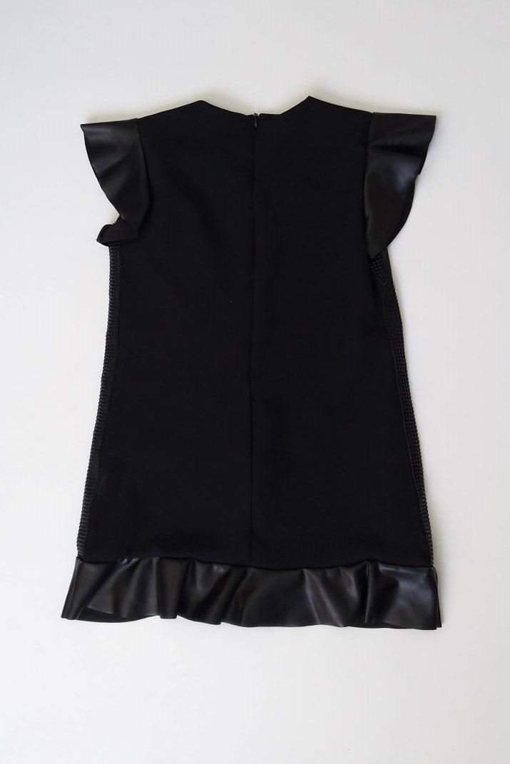 Φόρεμα δερματίνη για κορίτσια από 6 έως 16 ετών,λαιμόκοψη ,κοντό μανίκι,κλείνει με φερμουάρ και είναι ματ απ την πίσω μεριά