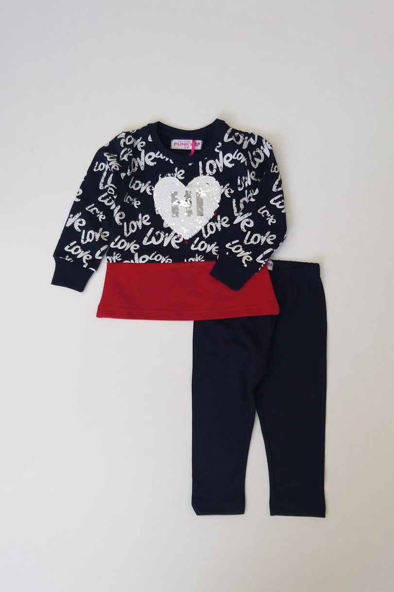 Σετ με κολάν για κορίτσια από 1 έως 6 ετών με μπλούζα από λεπτό φούτερ με εσωτερικό χνούδι, λαιμόκοψη , μακρύ μανίκι με λάστιχο στο τελείωμα και σχέδιο με παγιέτες που αλλάζουν χρώμα από κόκκινο σε άσπρο. Κολάν με λάστιχο στη μέση