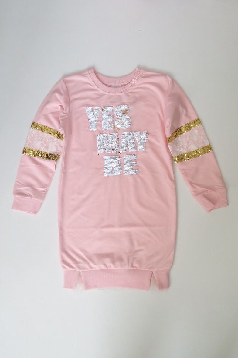 Φόρεμα φούτερ για κορίτσια από 6 έως 16 ετών λαιμόκοψη με τούλι στο κάτω μέρος και σχέδιο με παγιέτες που αλλάζουν χρώμα από χρυσό σε άσπρο