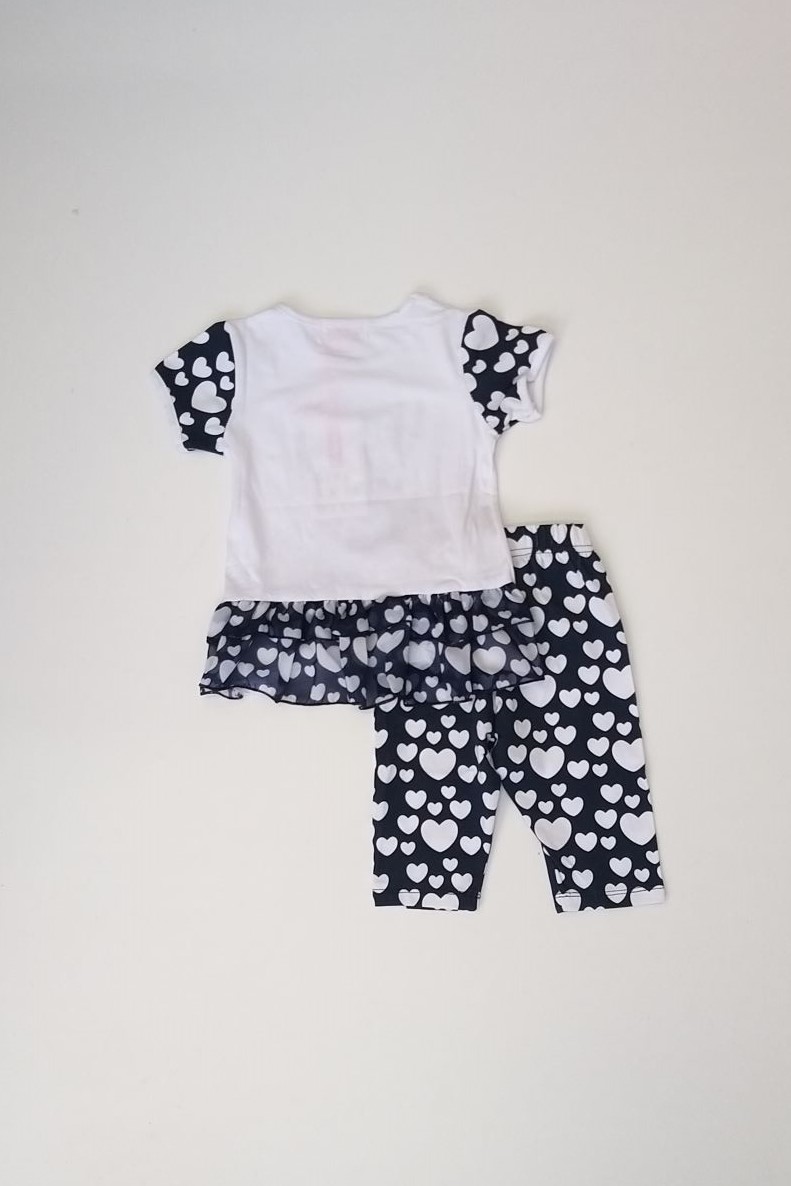 Σετ με κολάν για κορίτσια από 1 έως 6 ετών με μπλούζα μακρυά με κοντό μανίκι, με βολάν από πίσω και κάπρι κολάν με λάστιχο στη μέση και επαναλαμβανόμενο μοτίβο