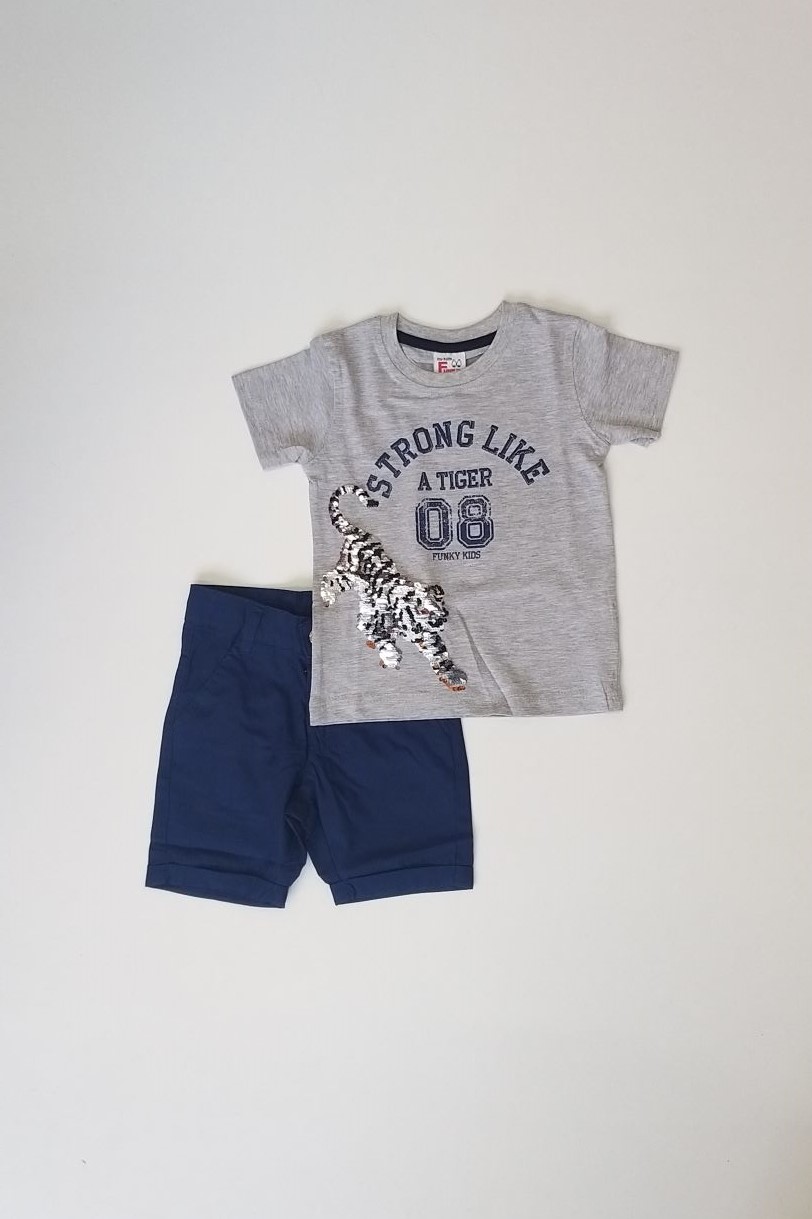 Σετ με βερμούδα για αγόρια από 1 έως 6 ετών με μπλούζα λαιμόκοψη με κοντό μανίκι με σχέδιο με παγιέτες που αλλάζουν χρώμα και υφασμάτινη βερμούδα με λάστιχο με κουμπάκι στη μέση εσωτερικά για ρύθμιση του μεγέθους ,κλείνει με κουμπί
