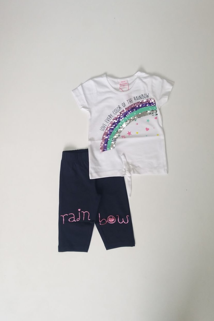 Σετ με κολάν για κορίτσια από 1 έως 6 ετών με μπλούζα λαιμόκοψη με κοντό μανίκι με δέσιμο στο κάτω μέρος και σχέδιο με παγιέτες που αλλάζουν χρώμα και κάπρι κολάν με λάστιχο στη μέση
