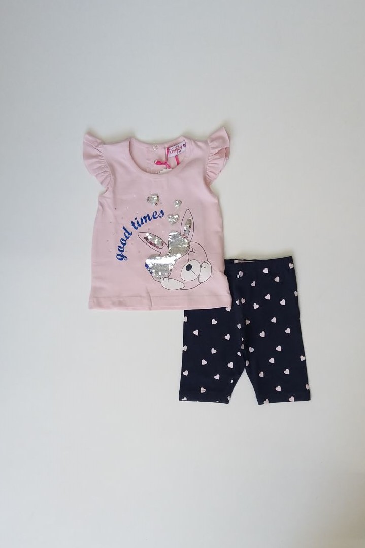 Σετ με κολάν για μωρά από 06 έως 24 μηνών με μπλουζοφόρεμα λαιμόκοψη,κοντό μανικάκι, τρούξ από πίσω για πιο εύκολο άλλαγμα του μωρού και κολάν με λάστιχο στη μέση και επαναλαμβανόμενο μοτίβο