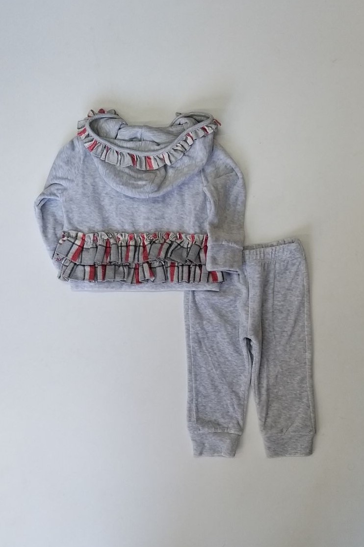 Φόρμα βελουτέ για κορίτσια από 9 έως 24 μηνών με ζακέτα με κουκούλα και σχέδιο με βολάν στο πίσω μέρος, κλείνει με φερμουάρ, μακό λαιμόκοψη μπλουζάκι με μακρύ μανίκι και παντελόνι με λάστιχο στη μέση