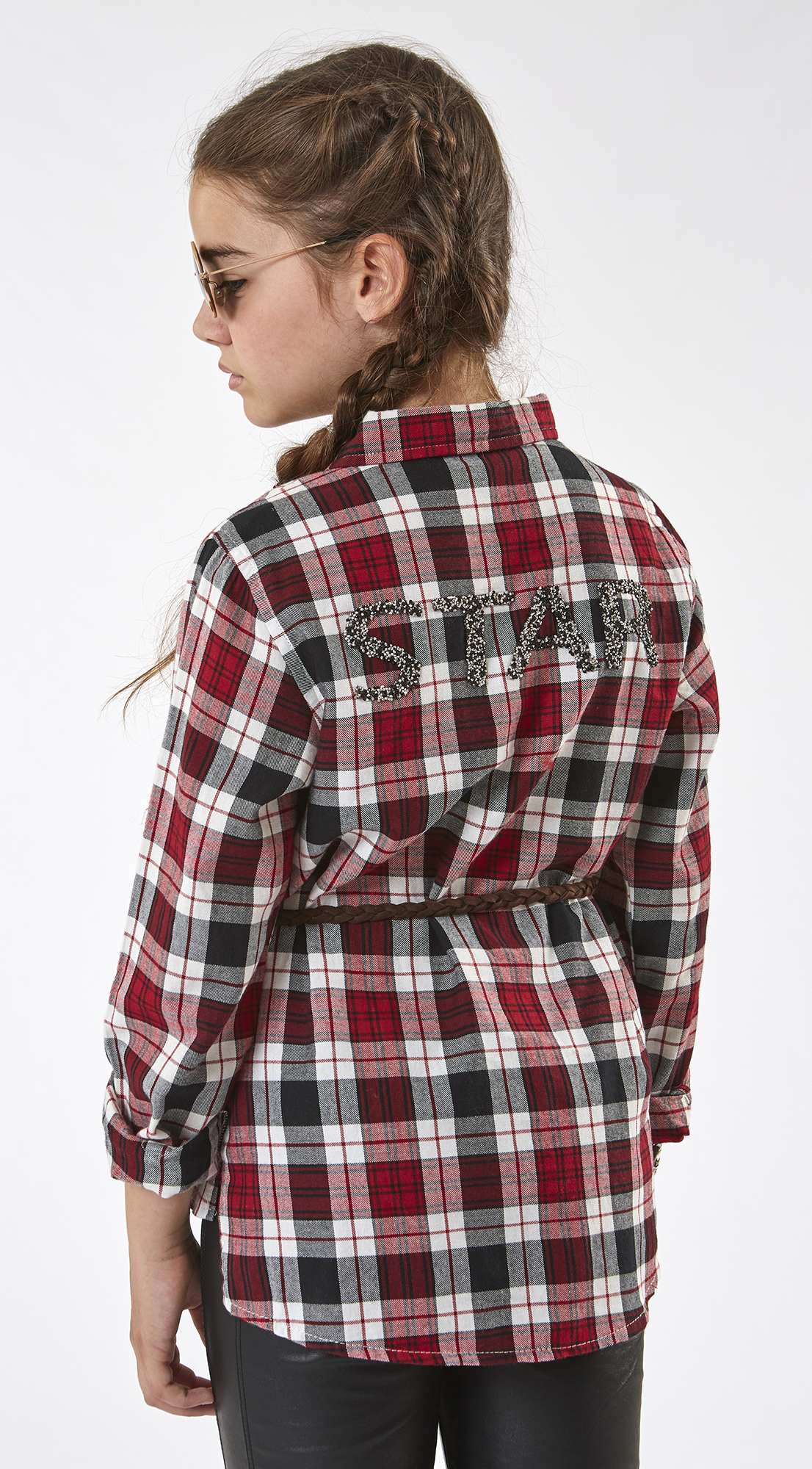 Πουκάμισο καρώ , μακρυ με ζωνάκι στη μέση .