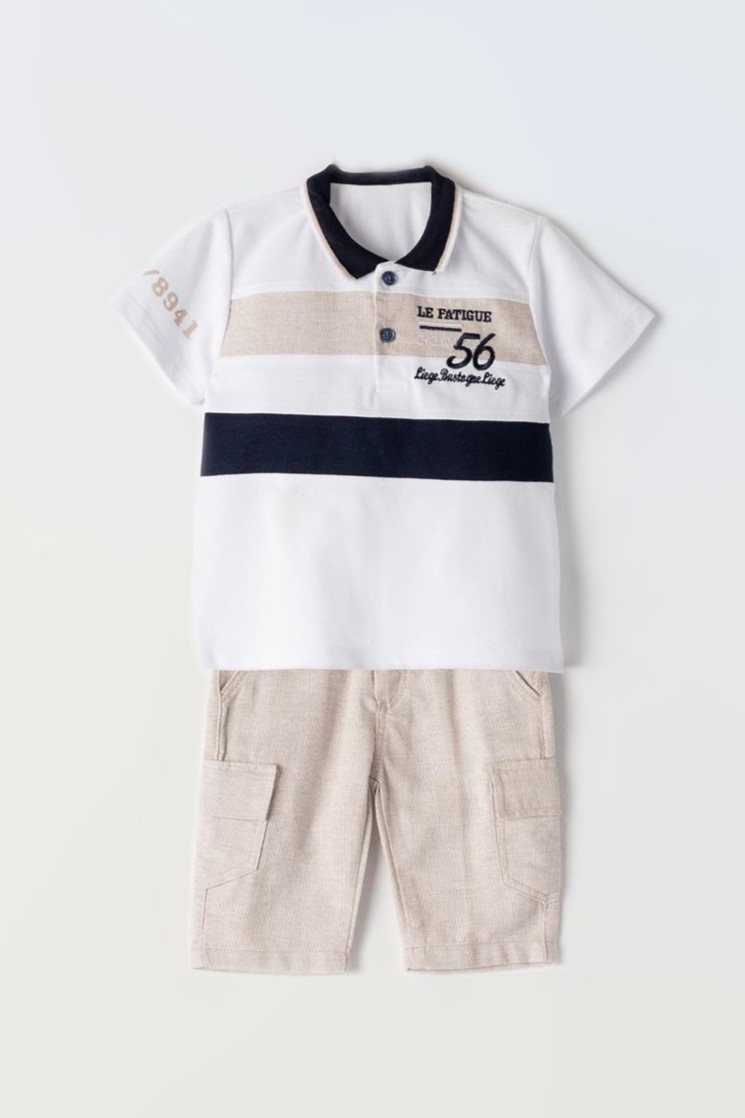 Σετ με βερμούδα για αγόρια από 1 έως 6 ετών με πόλο μπλούζα με κοντό μανίκι και λινλη βερμούδα με τσέπες στο πλάι και εσωτερικό κουμπάκι με λάστιχο για ρύθμιση του μεγέθους
