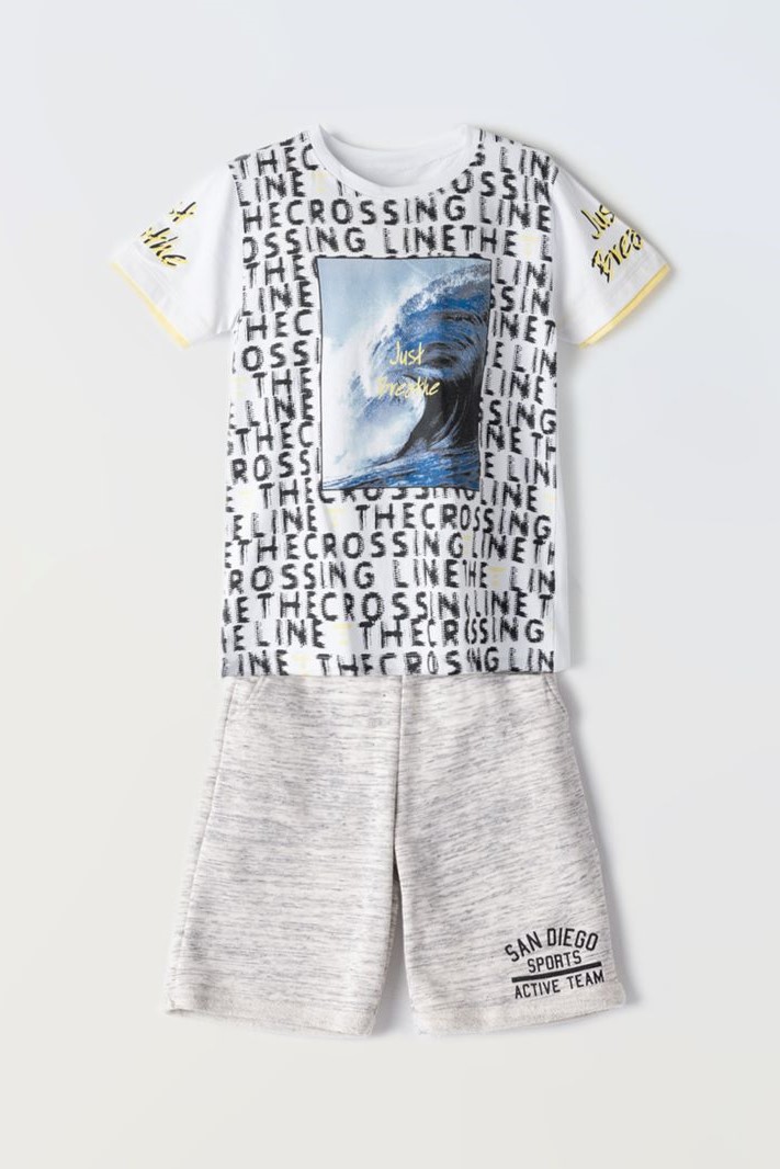 Σετ με βερμούδα για αγόρια από 6 έως 16 ετών με μακό λαιμόκοψη μπλούζα με κοντό μανίκι και βερμούδα με τσέπες και λάστιχο στη μέση