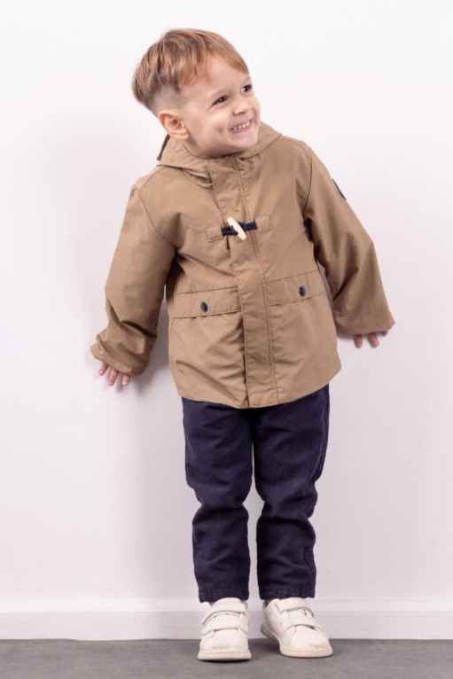 Λεπτό μακρύ μπουφάν για αγόρια από 2 έως 6 ετών με κουκούλα, κλείνει με φερμουάρ και κουμπάκια