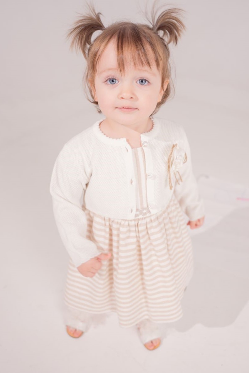 Σετ φόρεμα για κορίτσια από 6 έως 24 μηνών με φόρεμα με κοντό μανίκι ,κλείνει με φερμουάρ στο πίσω μέρος και κοντό πλεκτό ζακετάκι με κουμπάκια