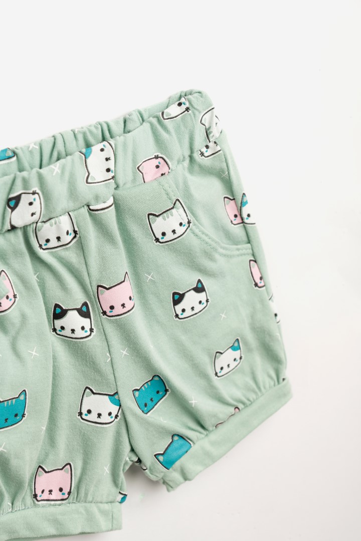 Σετ με σορτσάκι για κορίτσια από 3 έως 24 μηνών με μπλούζακι λαιμόκοψη με κουμπάκια στο πίσω μέρος και σορτσάκι με λάστιχο και τσεπούλες μπροστά