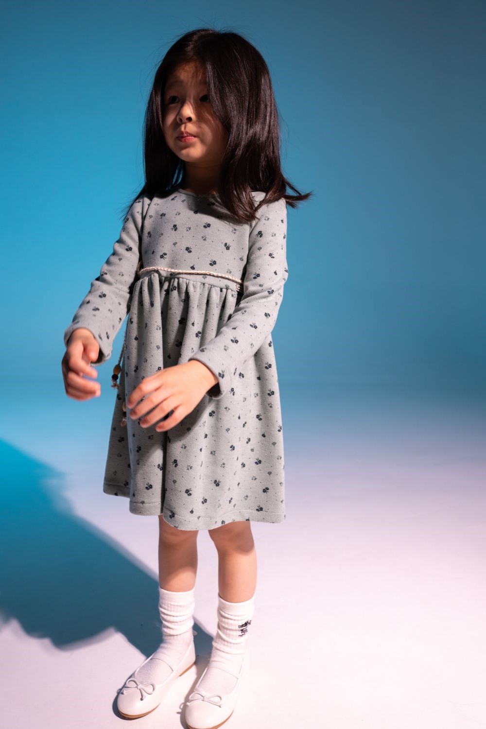 Φόρεμα για κορίτσια από 1 έως 6 ετών με μακρύ μανίκι, ζώνη στη μέση και φερμουάρ στο πίσω μέρος