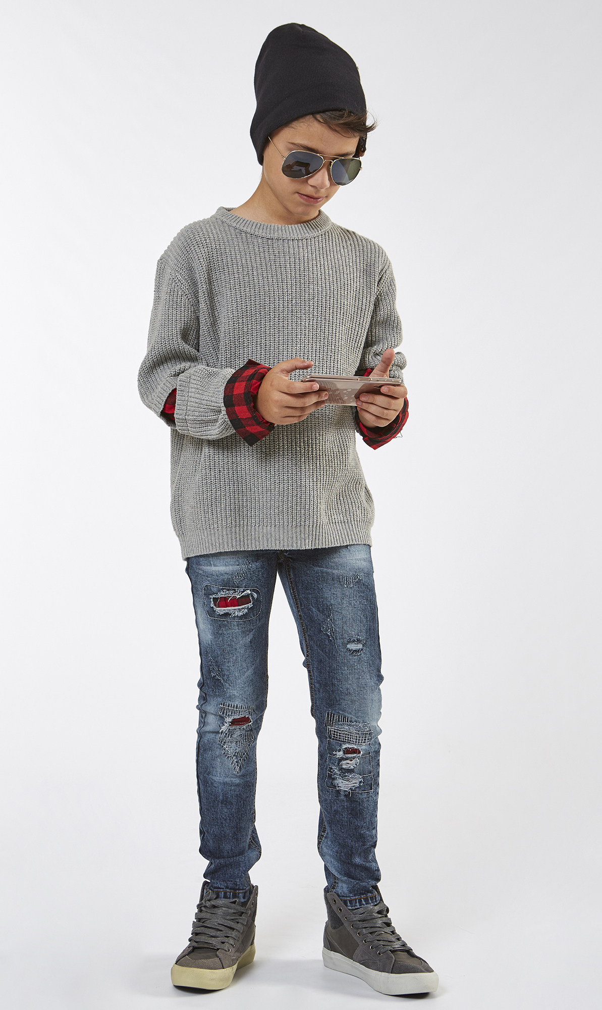 Μπλούζα πλεκτή λαιμόκοψη με σχεδιο στα μανίκια