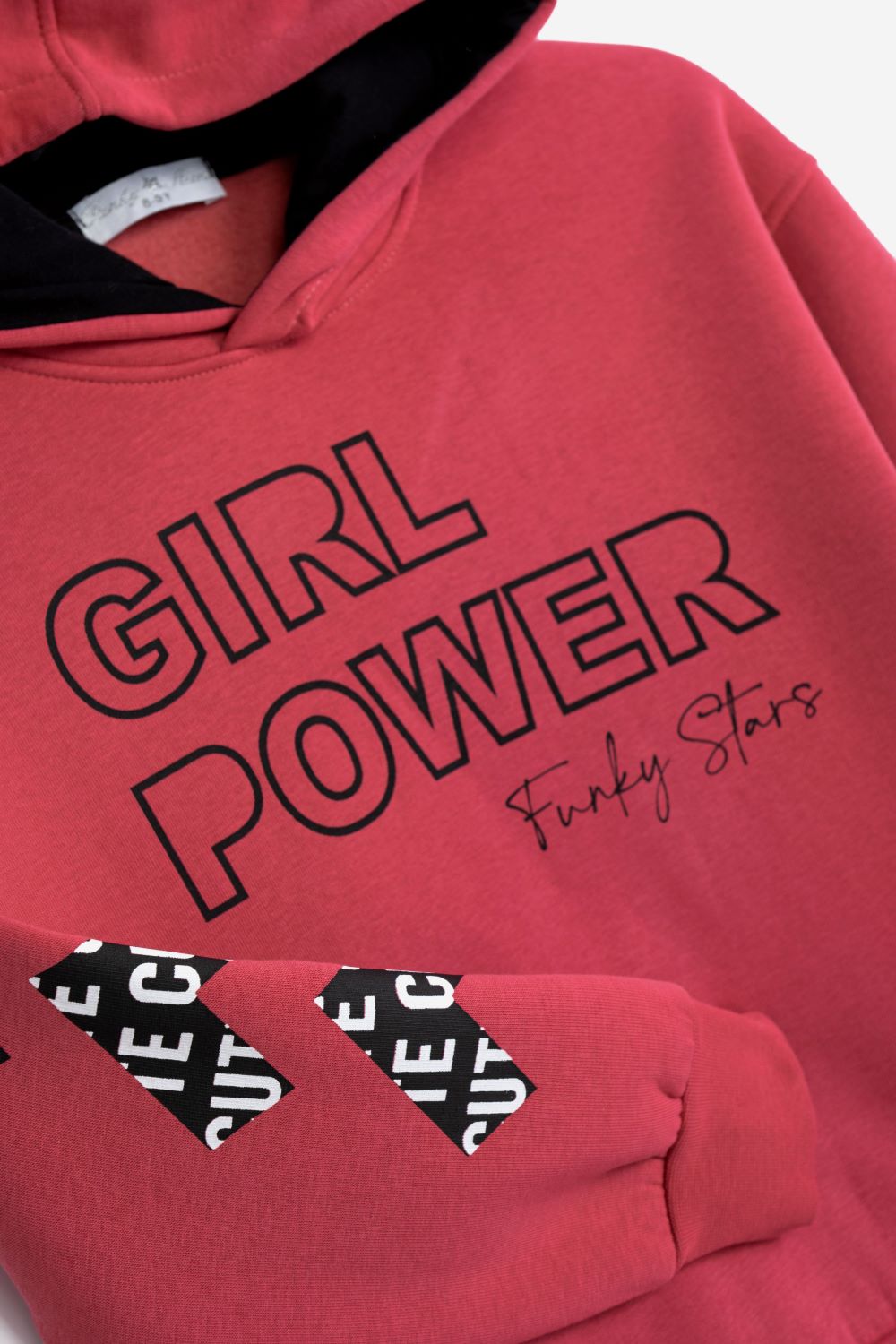 Φόρμα φούτερ για κορίτσια από 6 έως 14 ετών με εσωτερικό χνούδι με μπλούζα με κουκούλα και παντελόνι με λάστιχο στη μέση , κορδόνι και τσέπες