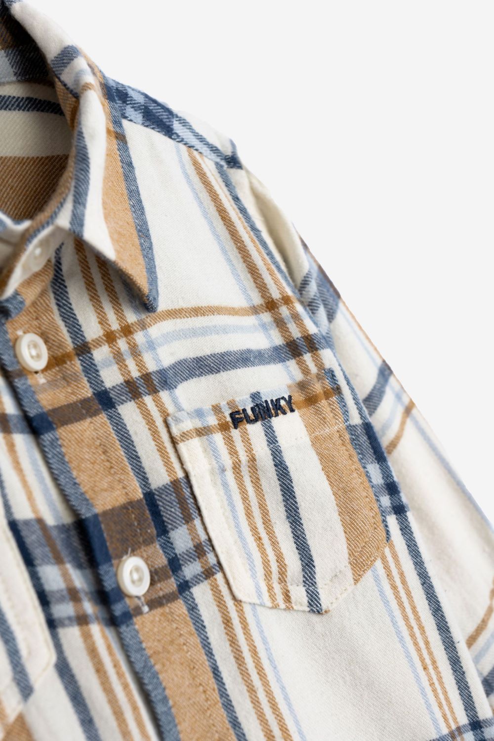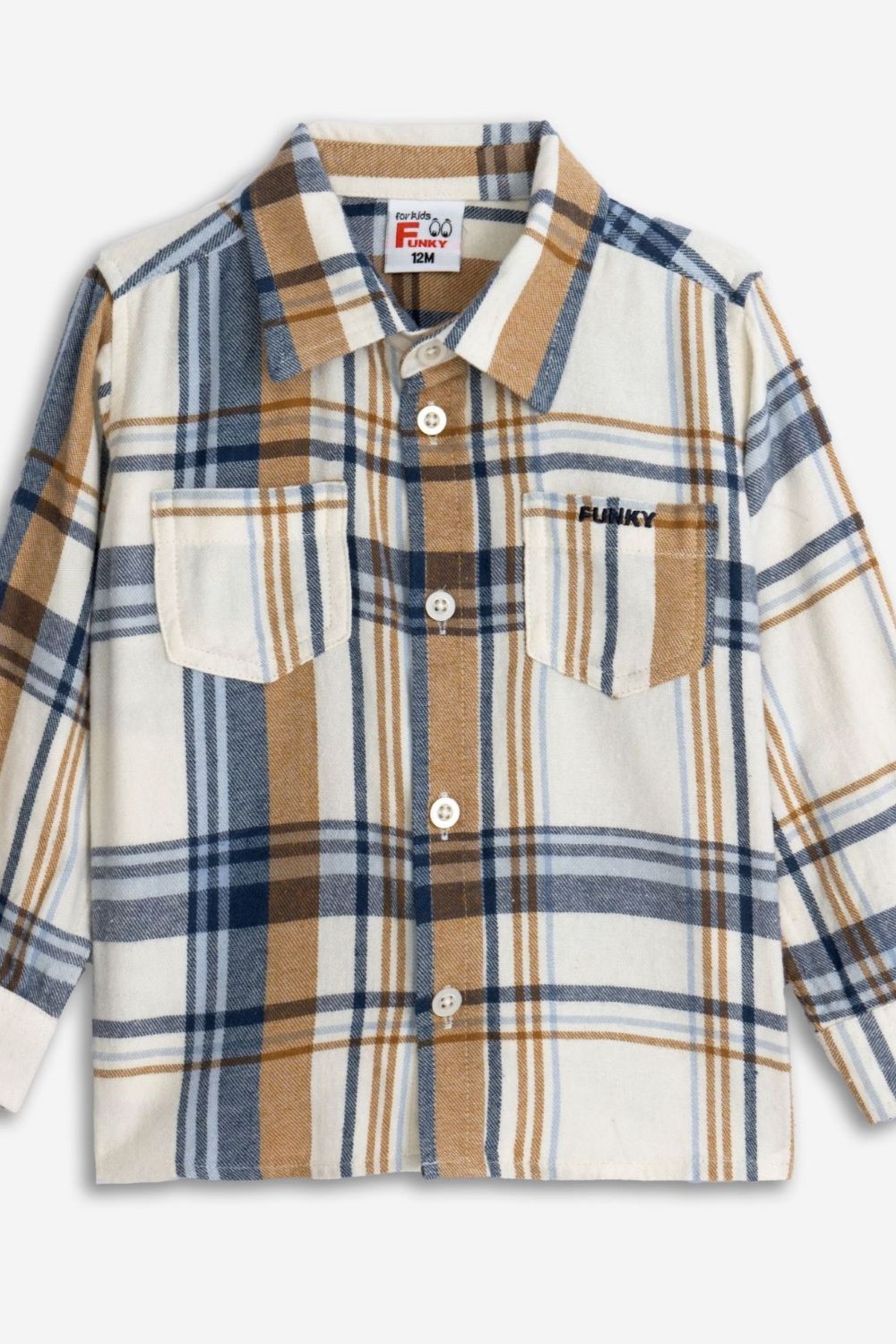 Σετ με παντελόνι για αγόρια από 6 έως 24 μηνών με καρώ πουκάμισο με μακρύ μανίκι και τζιν μαλακό ελαστικό παντελόνι με λάστιχο στη μέση