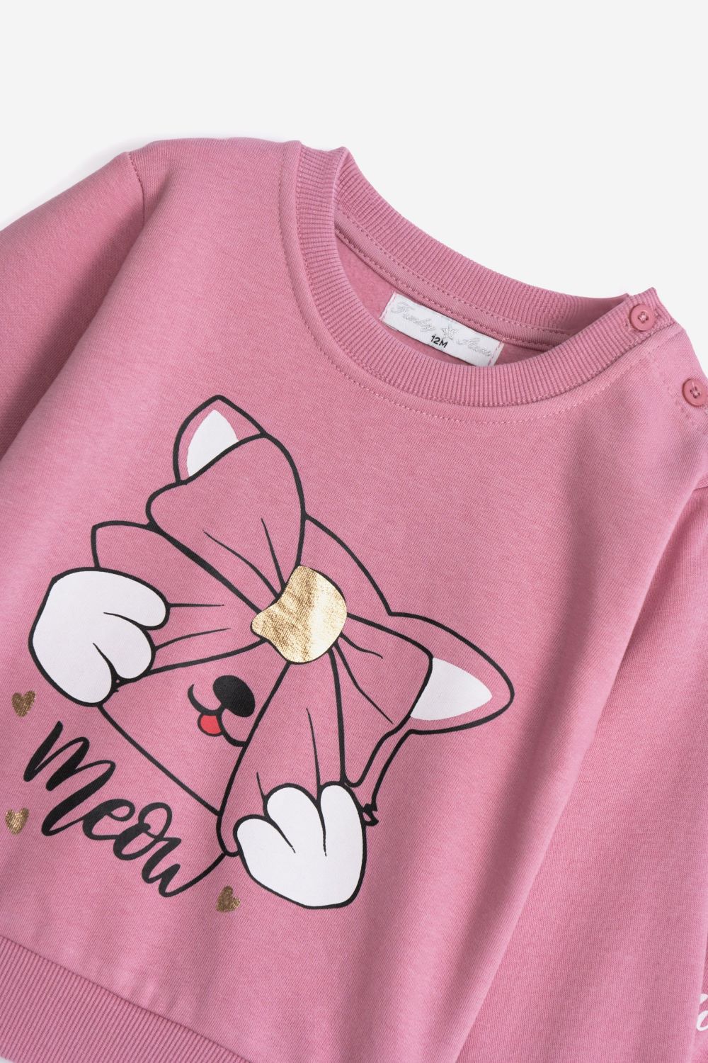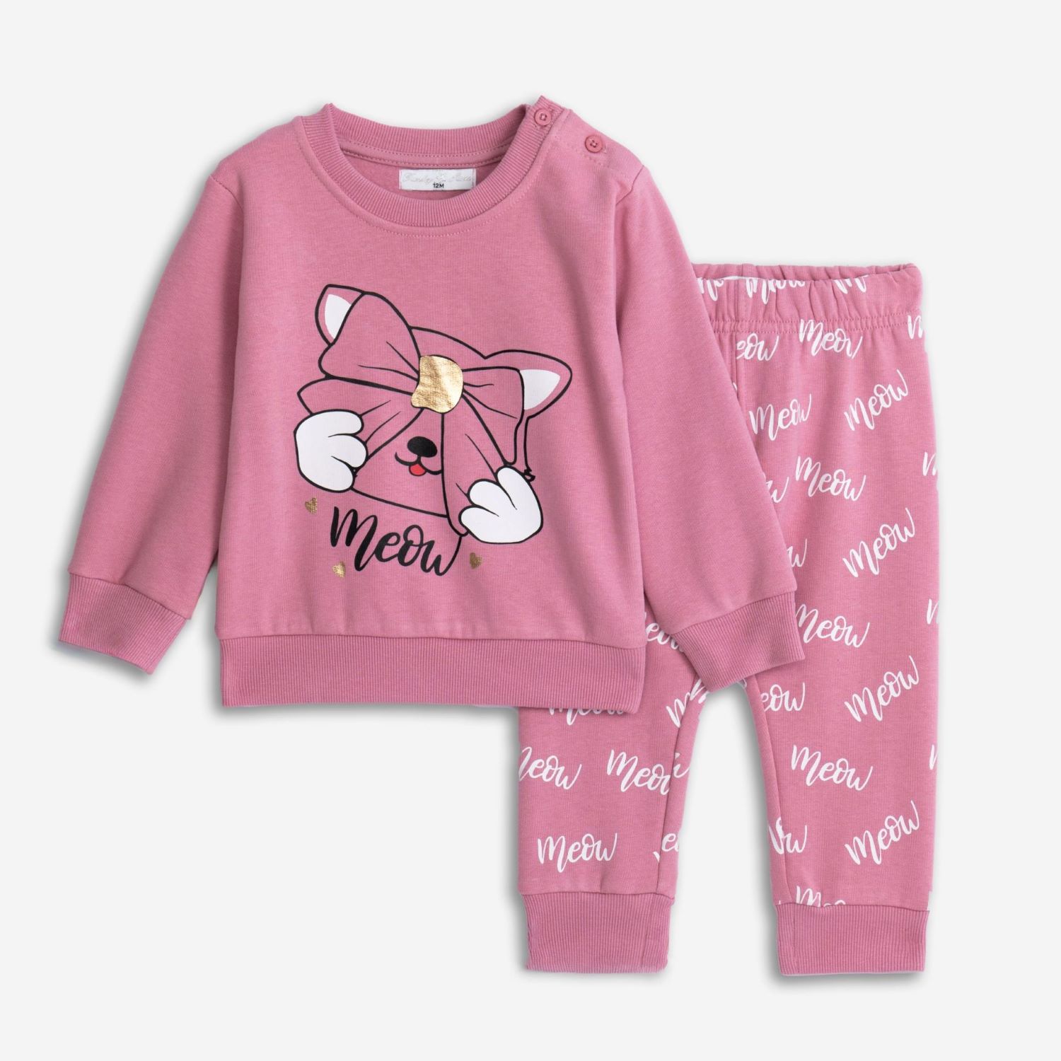 Φόρμα φούτερ για κορίτσια από 6 έως 24 μηνών με λαιμόκοψη μπλούζα με τρουξ στο πλάι για πιο εύκολο άλλαγμα του μωρού και παντελόνι με λάστιχο στη μέση