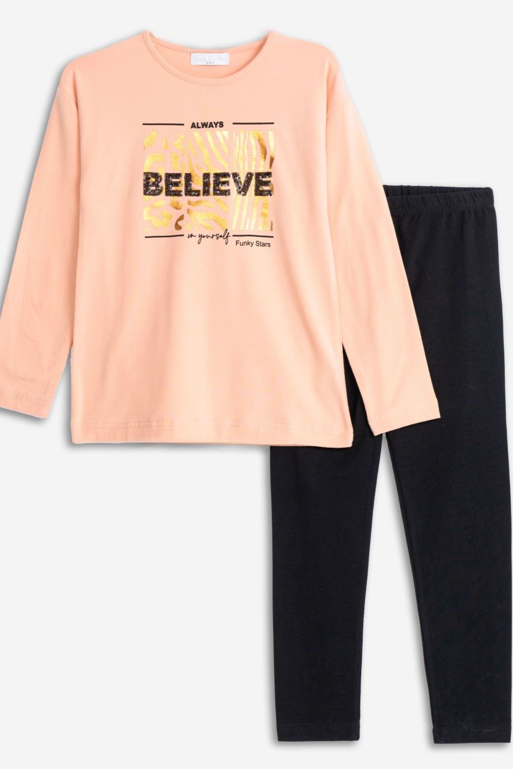 Σετ με κολάν για κορίτσια από 8 έως 12 ετών με μπλούζα λαιμόκοψη και κολάν με εσωτερικό χνούδι και λάστιχο στη μέση