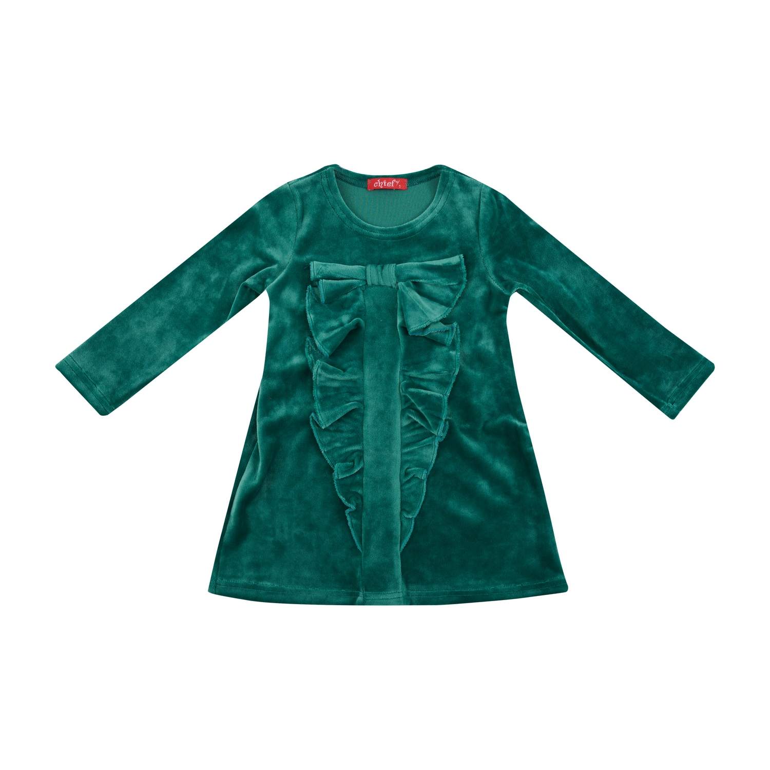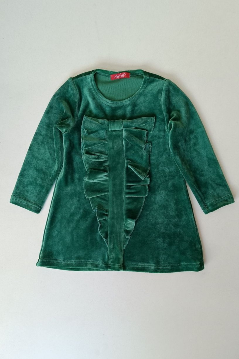 Βελουτέ φόρεμα για κορίτσια από 1 έως 5 ετών με μακρύ μανίκι, άλφα γραμμή με ελαστικότητα και λεπτομέρεια με βολάν