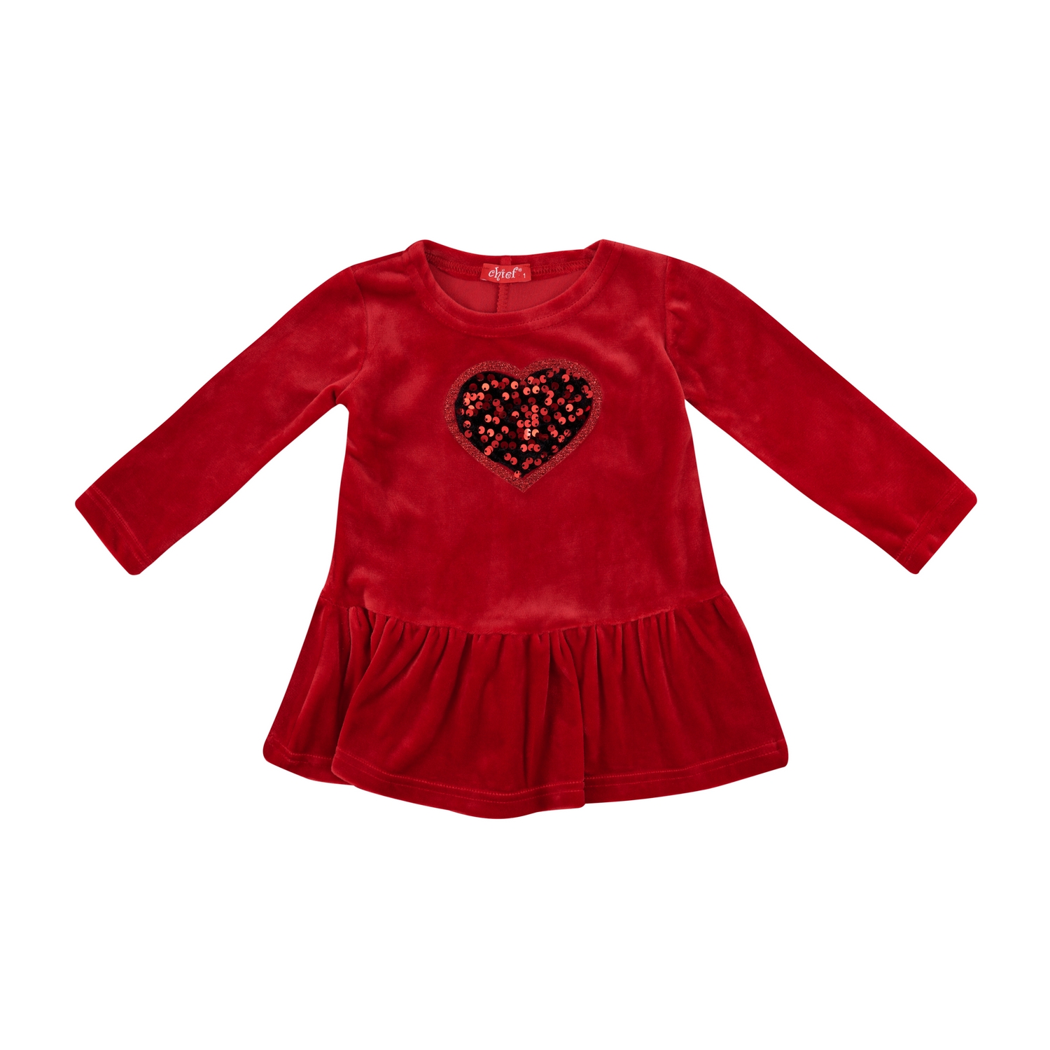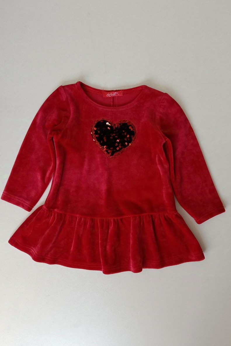Βελουτέ φόρεμα για κορίτσια από 1 έως 5 ετών με μακρύ μανίκι, με ελαστικότητα και λεπτομέρεια με παγιέτες