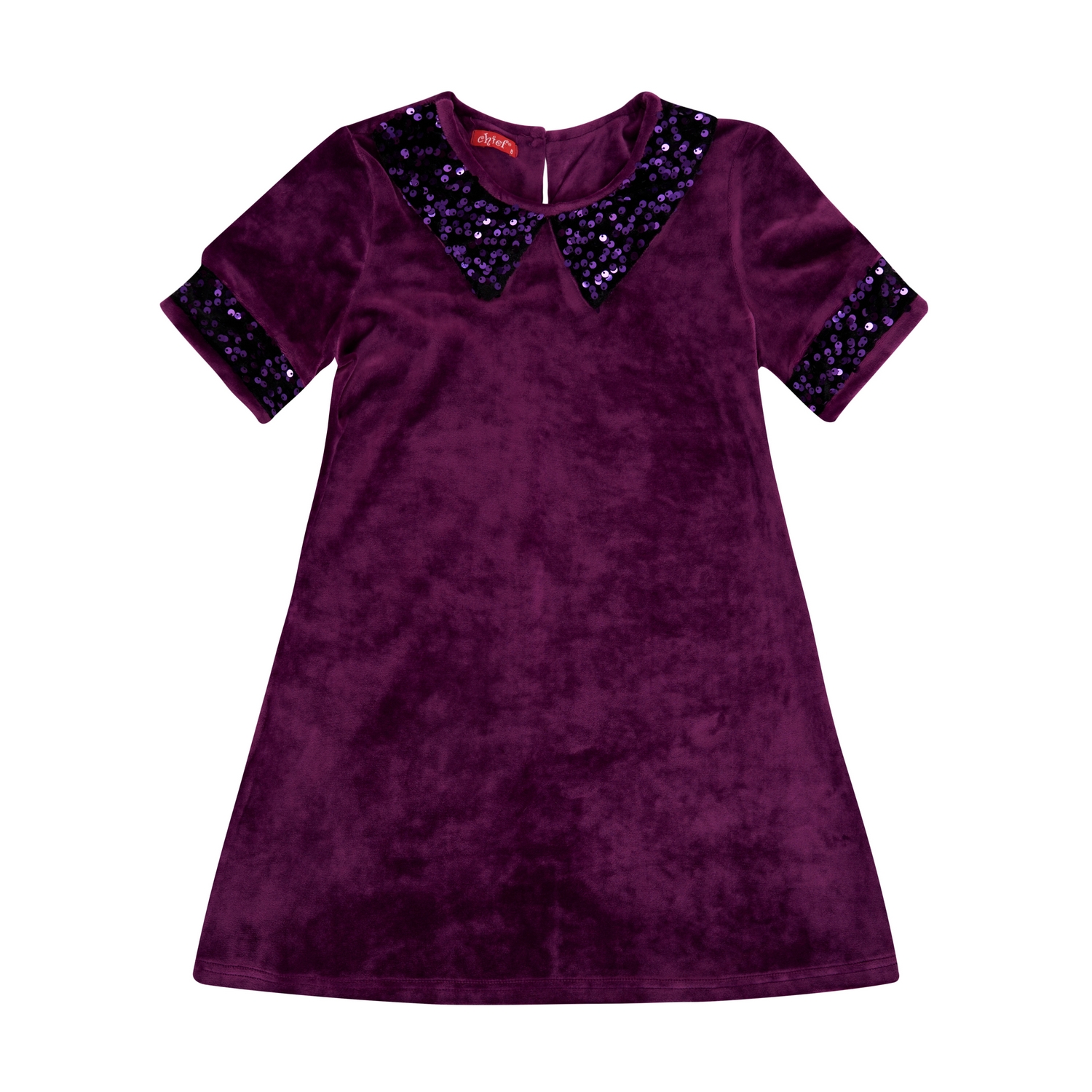 Βελουτέ φόρεμα για κορίτσια από 6 έως 16 ετών με κοντό μανίκι , ελαστικότητα, κουμπάκια στο πίσω μέρος και λεπτομέρειες με παγιέτες