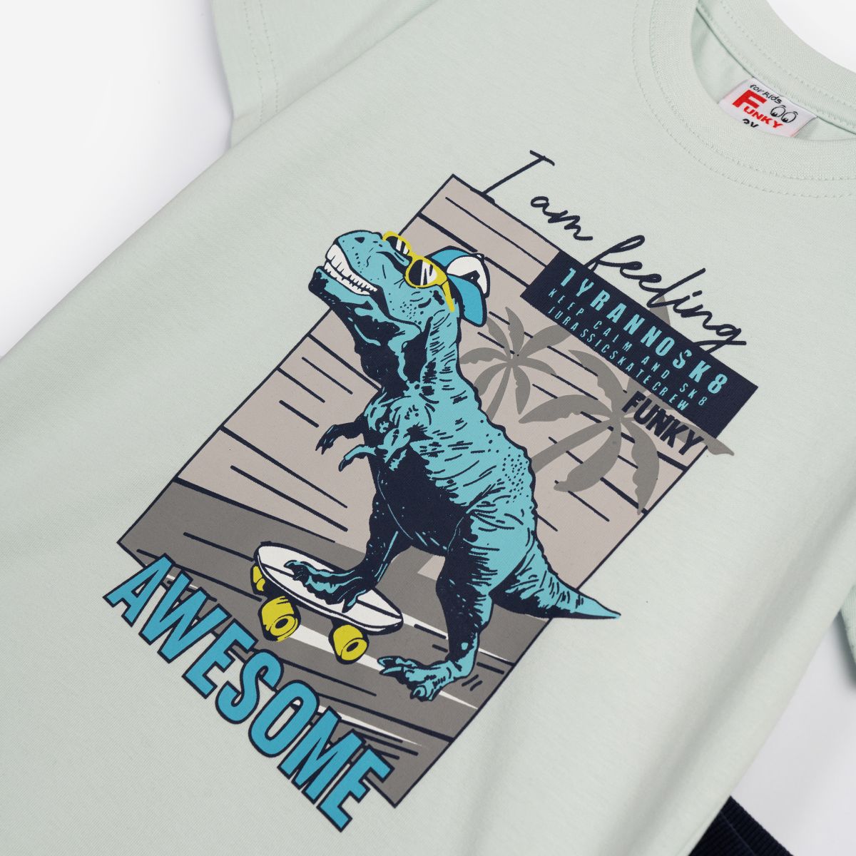 Σετ με βερμούδα για αγόρια από 2 έως 6 ετών με μακό λαιμόκοψη μπλουζάκι με κοντό μανίκι και βερμούδα με λάστιχο στη μέση με κορδόνι για ρύθμιση του μεγέθους και 2 τσέπες μπροστά