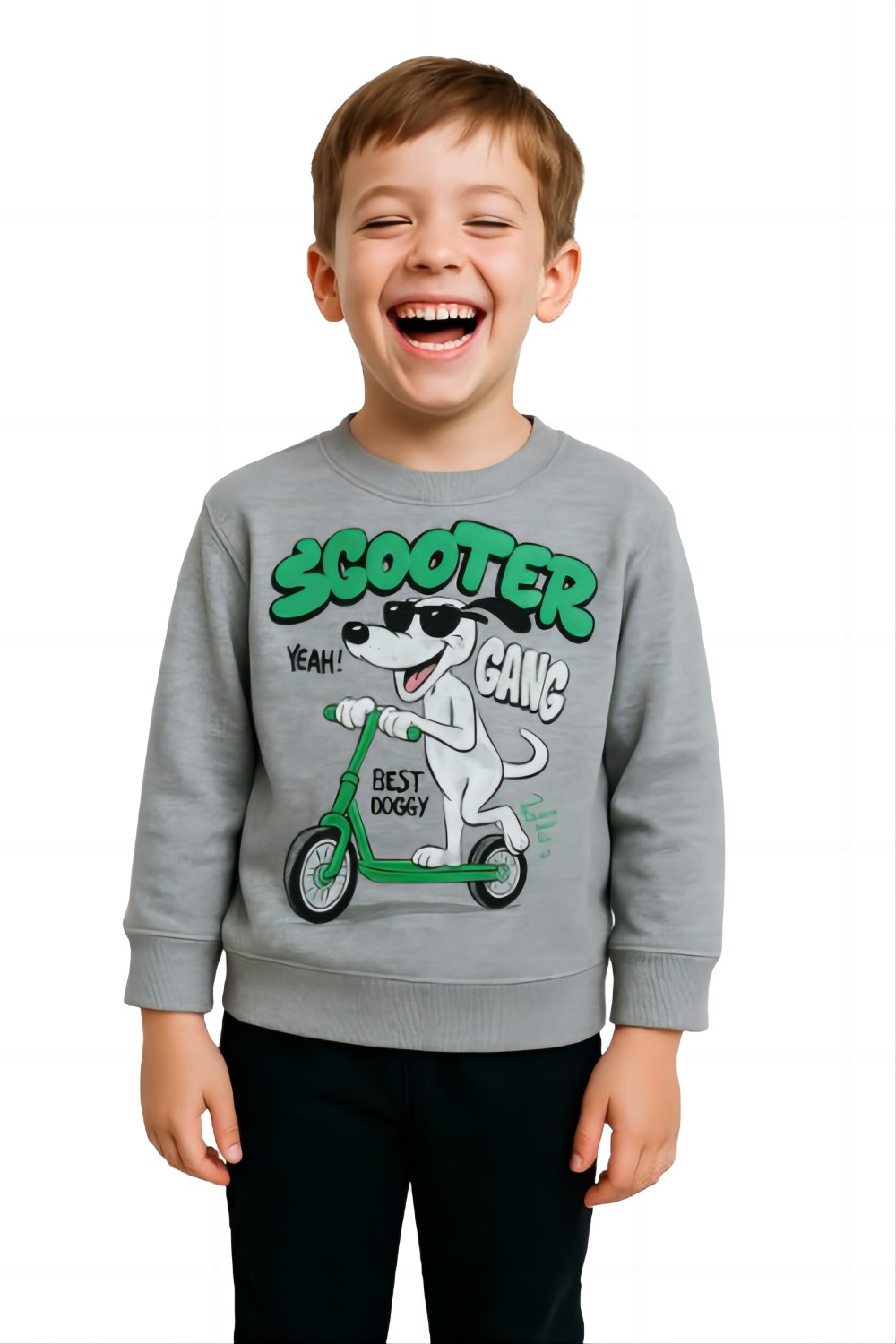 Φόρμα φούτερ για αγόρια από 1 έως 5 ετών ελληνικής ραφής με εσωτερικό χνούδι , μπλούζα λαιμόκοψη και παντελόνι με λάστιχο στη μέση και τσέπες