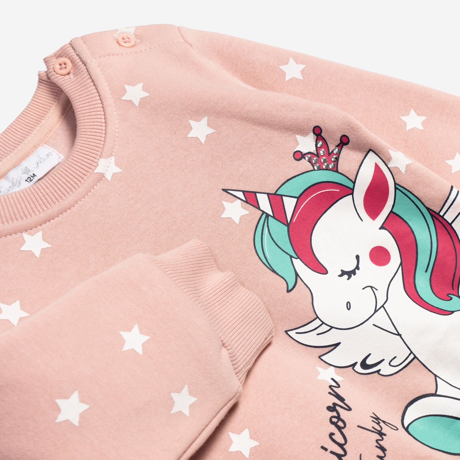 Φόρμα φούτερ με εσωτερικό χνούδι για κορίτσια από 6 έως 24 μηνών με μπλούζα λαιμόκοψη και παντελόνι με λάστιχο στη μέση