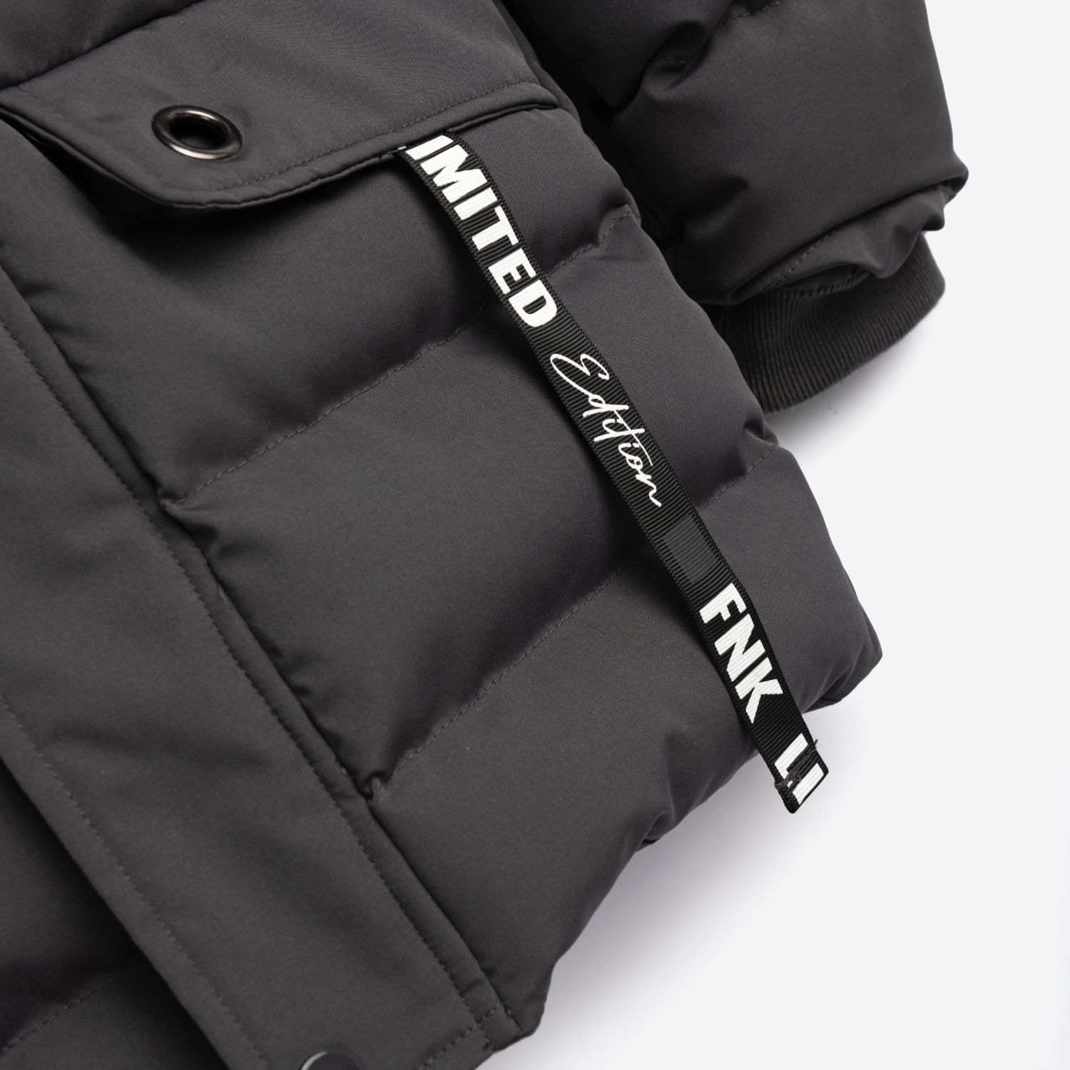 Μπουφάν για αγόρια από 2 έως 6 ετών με αφαιρούμενη κουκούλα, αφαιρόυμενη γούνα και εσωτερική γούνινη επένδυση , κλείνει με φερμουάρ και κουμπάκια