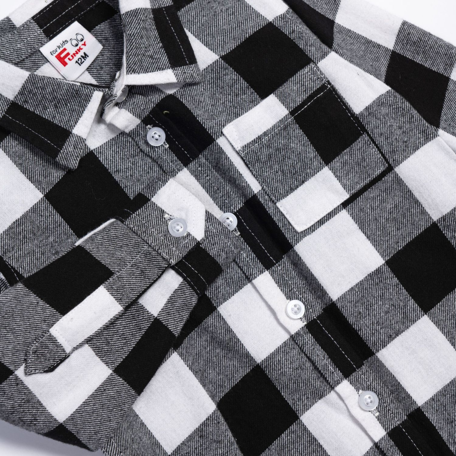 Σετ με παντελόνι για αγόρια από 6 έως 24 μηνών με καρώ πουκάμισο με μακρύ μανίκι και τζιν μαλακό ελαστικό παντελόνι με εσωτερικό κουμπάκι με λάστιχο στη μέση