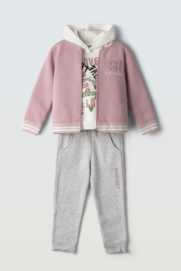 Φόρμα 3 τμχ για κορίτσια από 1 έως 5 ετών με εσωτερικό χνούδι, μπλούζα φούτερ με κουκούλα, ζακέτα που κλείνει με φερμουάρ και παντελόνι με λάστιχο στη μέση με κορδόνι και τσέπες