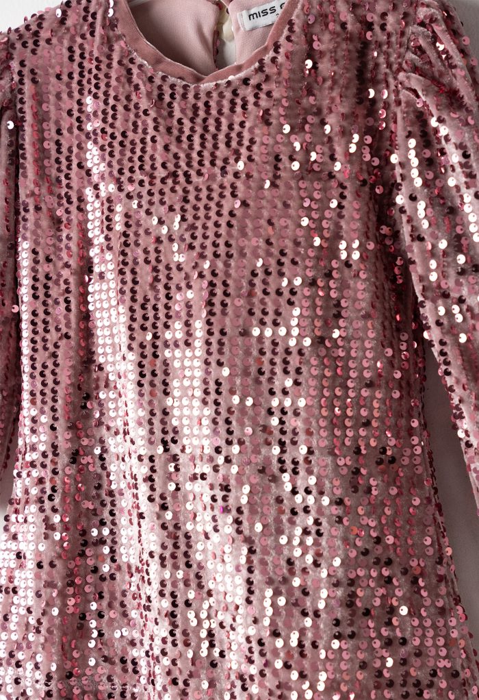 Βελουτέ φόρεμα με παγιέτες για κορίτσι από 1 έως 6 ετών με κουμπάκι στο πίσω μέρος και τσαντάκι