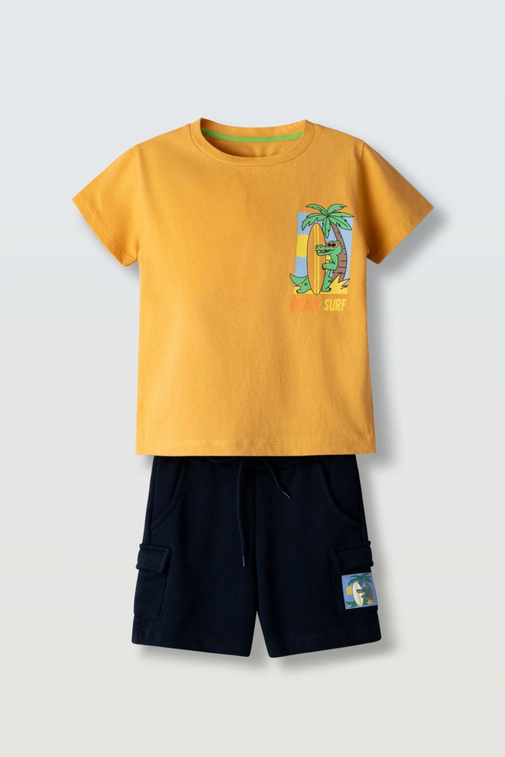 Σετ με βερμούδα για αγόρια από 1 έως 6 ετών με μακό λαιμόκοψη μπλούζα με κοντό μανίκι και σχέδιο στην πλάτη και βερμούδα με τσέπες και λάστιχο στη μέση