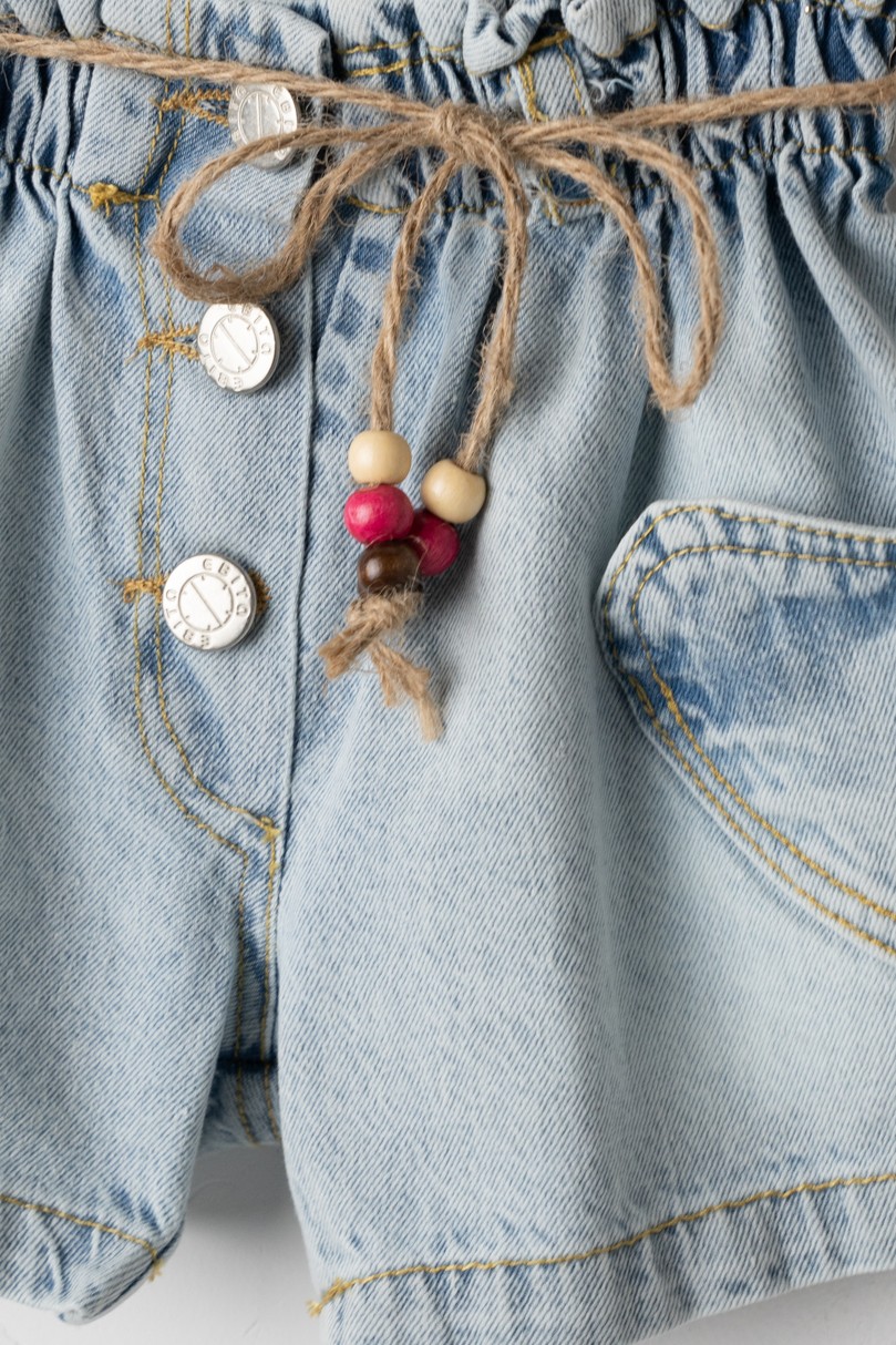 Σετ με σορτσάκι για κορίτσια από 2 έως 6 ετών με κιπούρ μπλουζάκι και τζιν σορτσάκι με λάστιχο στη μέση