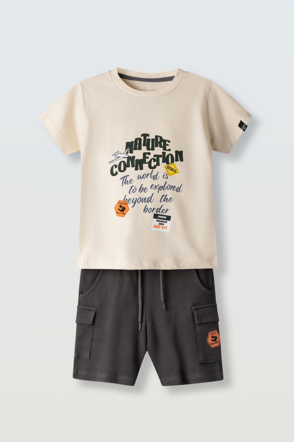 Σετ με βερμούδα για αγόρια από 2 έως 6 ετών με μακό λαιμόκοψη μπλούζα με κοντό μανίκι και βερμούδα με τσέπες και λάστιχο με κορδόνι στη μέση