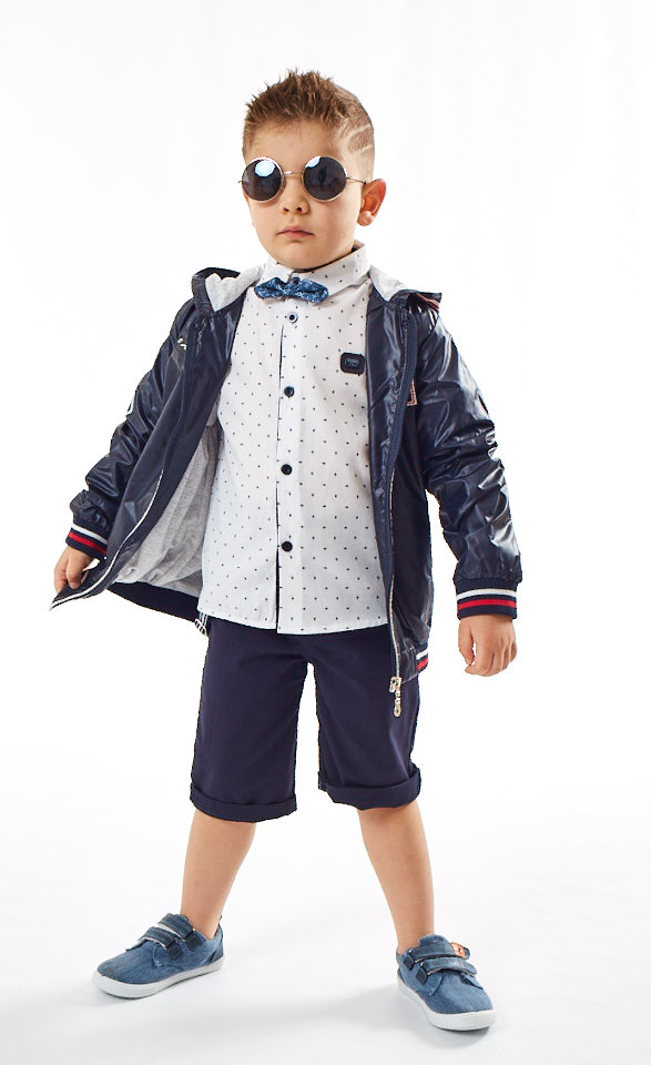 Μπουφάν για αγόρια από 1 έως 6 ετών, με λεπτό έλαφρώς γυαλιστερό ύφασμα με κουκούλα, κλείνει με φερμουάρ, έχει 2 τσεπούλες μπροστά , λάστιχο στο τελείωμα του μανικιού και στο κάτω μέρος.Έχει και ένα μικρό τσεπάκι στο στήθος που κλείνει με φερμουάρ.