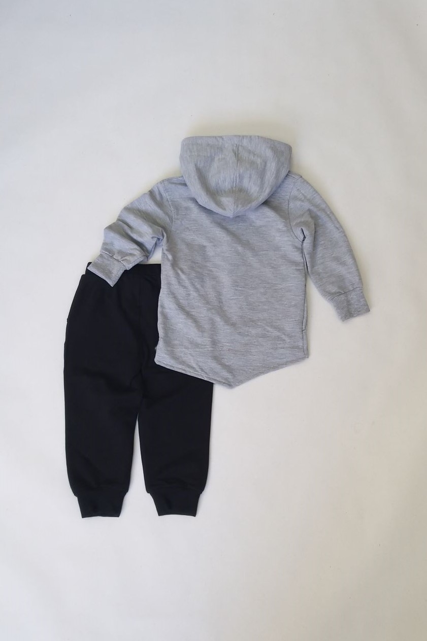 Φόρμα από λεπτό φούτερ με ζακέτα που κλείνει με φερμουάρ,έχει κουκούλα και μακρύ μανίκι με λάστιχο στο τελείωμα. Παντελόνι με δύο τσέπες , λάστιχο με κορδόνι στη μέση για ρύθμιση μεγέθους και λάστιχο στο κάτω μέρος